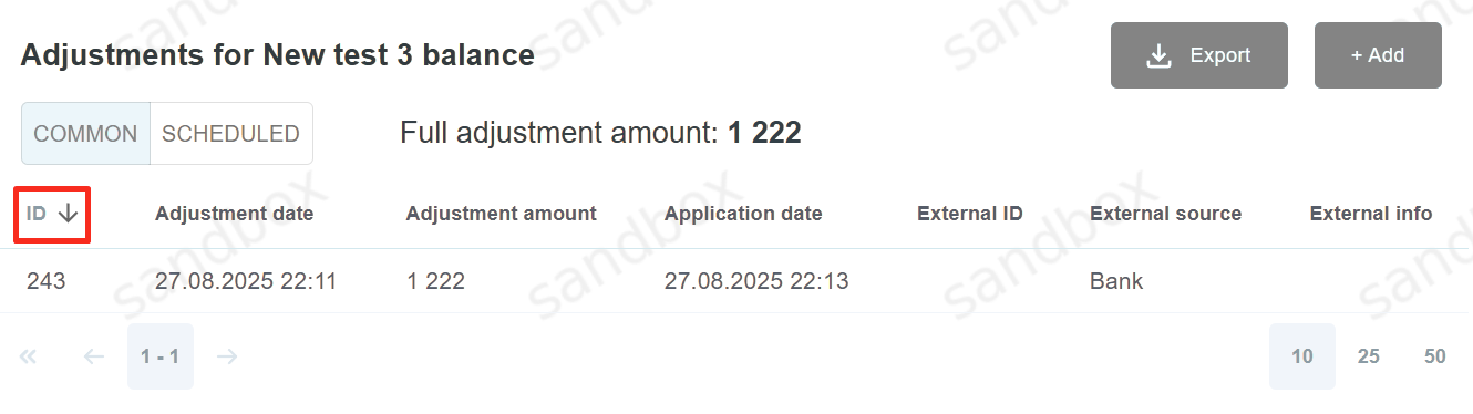 For the convenience of users, adjustments can be sorted by ID using the button below: